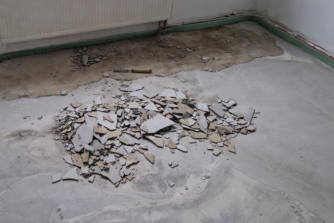 It was clear from the start that the floor was extensively damaged. It had never been fixed and carpet was placed on top of an old linoleum floor. One could see the cracks through the linoleum floor.
