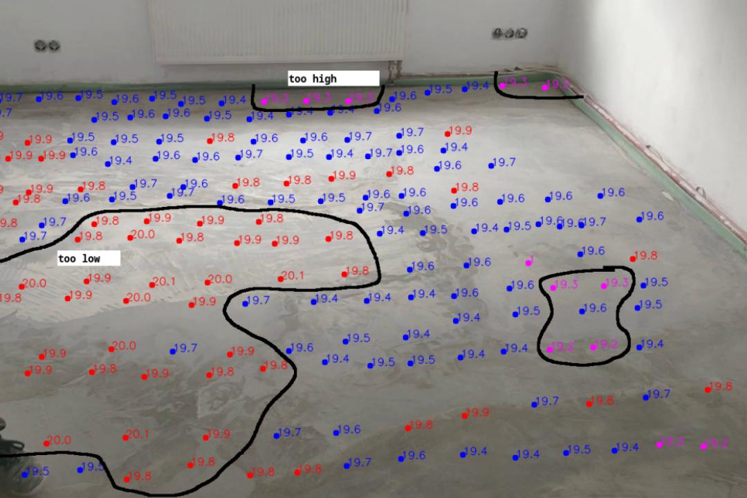 A two-dimensional heatmap of the height of the room would allow me to see where there are areas on the floor that are too high or too low. This would enable use to then strategically pour smaller quantities of the leveling compound on only the regions that need to be raised.