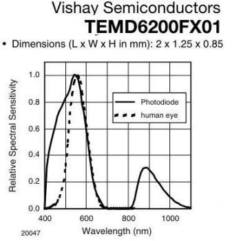 - I2C Ambient Light sensors as used in smart home devices that contain a photo diode and digitization circuitry in one package. However they generally don’t have peak sensitivity at the wavelength I need.