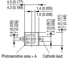 The photodiodes have a width of 4.3mm and height of 3.7mm.
