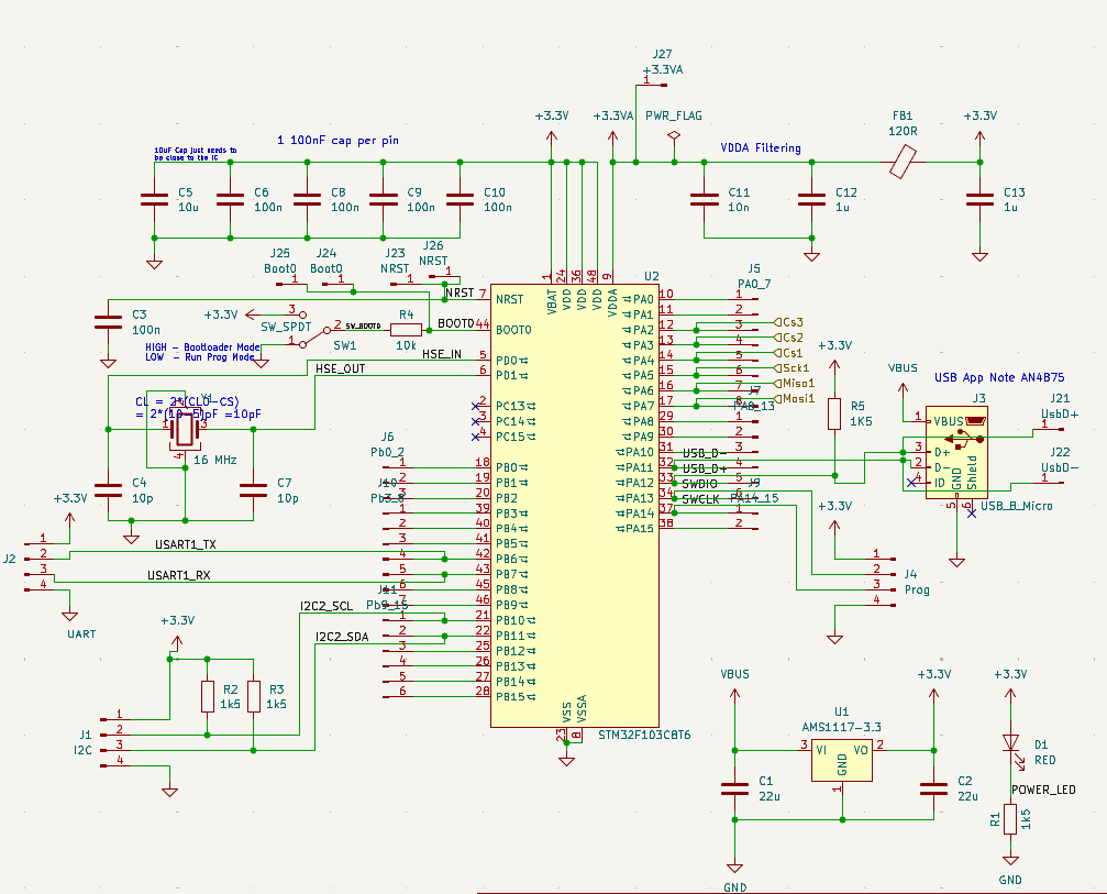 I took over only the schematic, but not the PCB layout and heavily modified it. This way I could be relatively sure that the basic stm32f103 circuitry would work from the start.