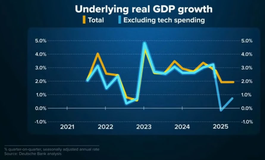US economic growth is negative excluding A.I (Image taken from Deutsche Bank)