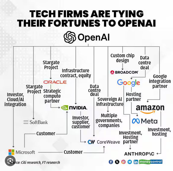 Tech firms are tying themselves to Open A.I (Image taken from Citi research, FT research)
