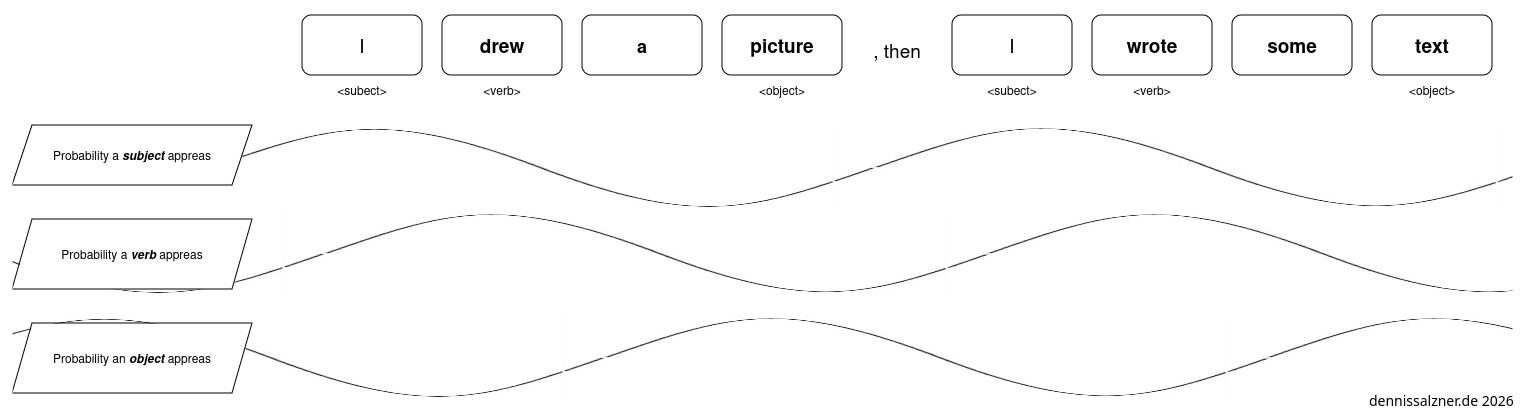 - with a probability, for instance a Subject is followed by a Verb followed by an Object as in “I drew a picture”.