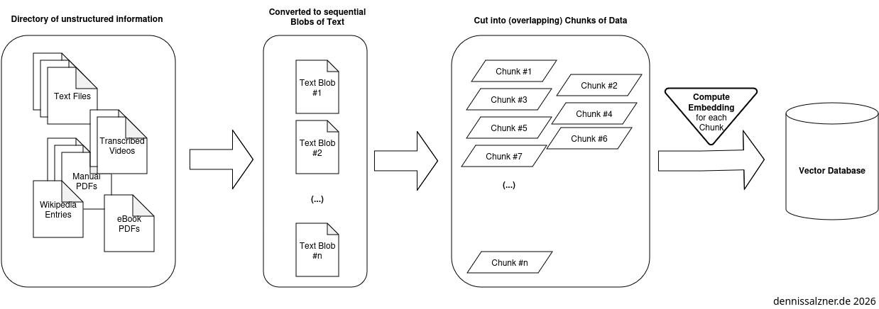 In order to do this large amounts of data are ingested into a database as chunks. An embedding is computed (see “LLMs beyond the Hype”) that is used to locate the chunks.